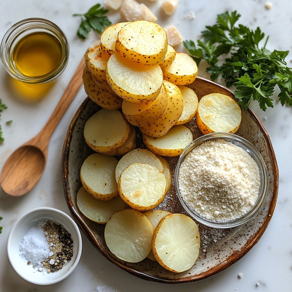 Gathering just a few simple, everyday ingredients packs incredible flavor and texture into this dish. Each component plays a crucial role, from the creamy potatoes to the salty Parmesan and fresh parsley adding brightness and color.