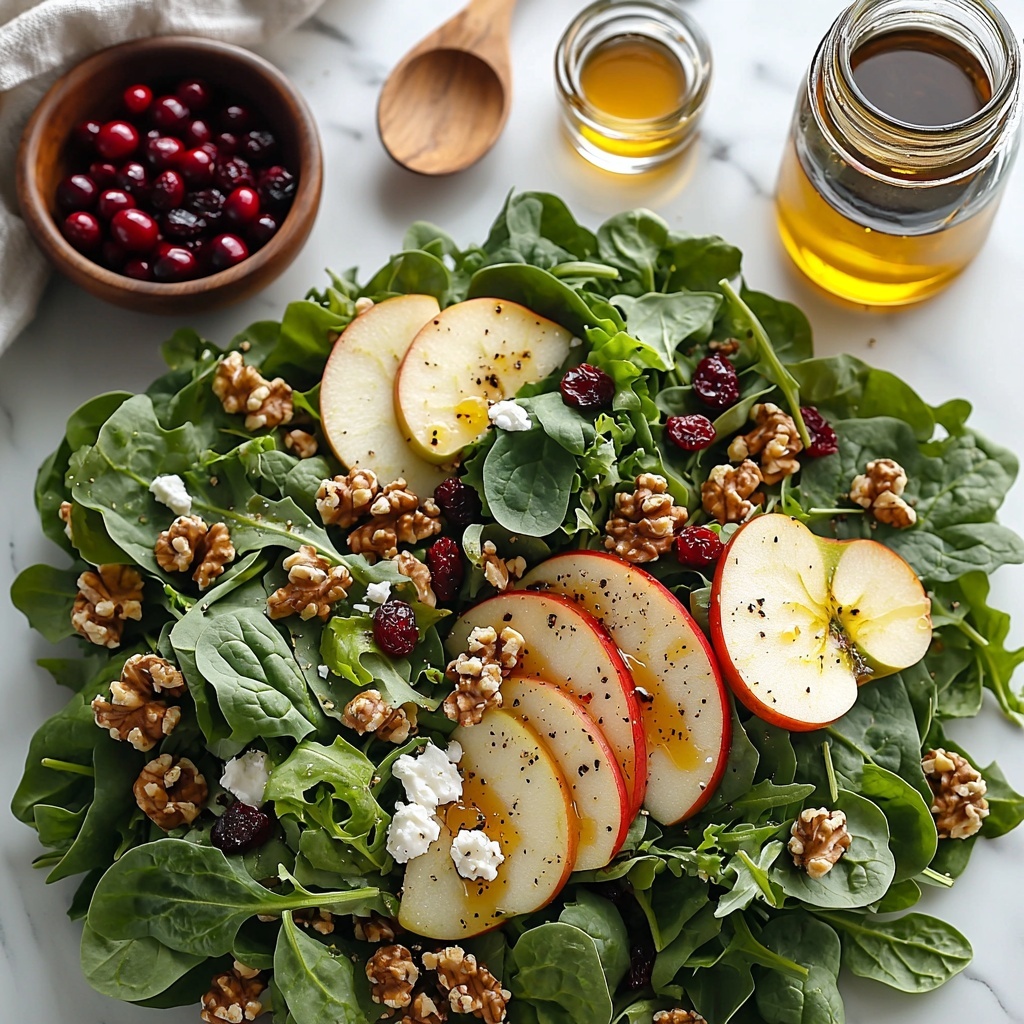 Serve the Apple Walnut Salad with Dried Cranberries and Feta Recipe in individual clear glass bowls or mason jars for a charming, layered presentation. Alternatively, stuff it into a pita pocket for a delightful handheld lunch or arrange the salad atop a bed of quinoa for an elevated twist.
