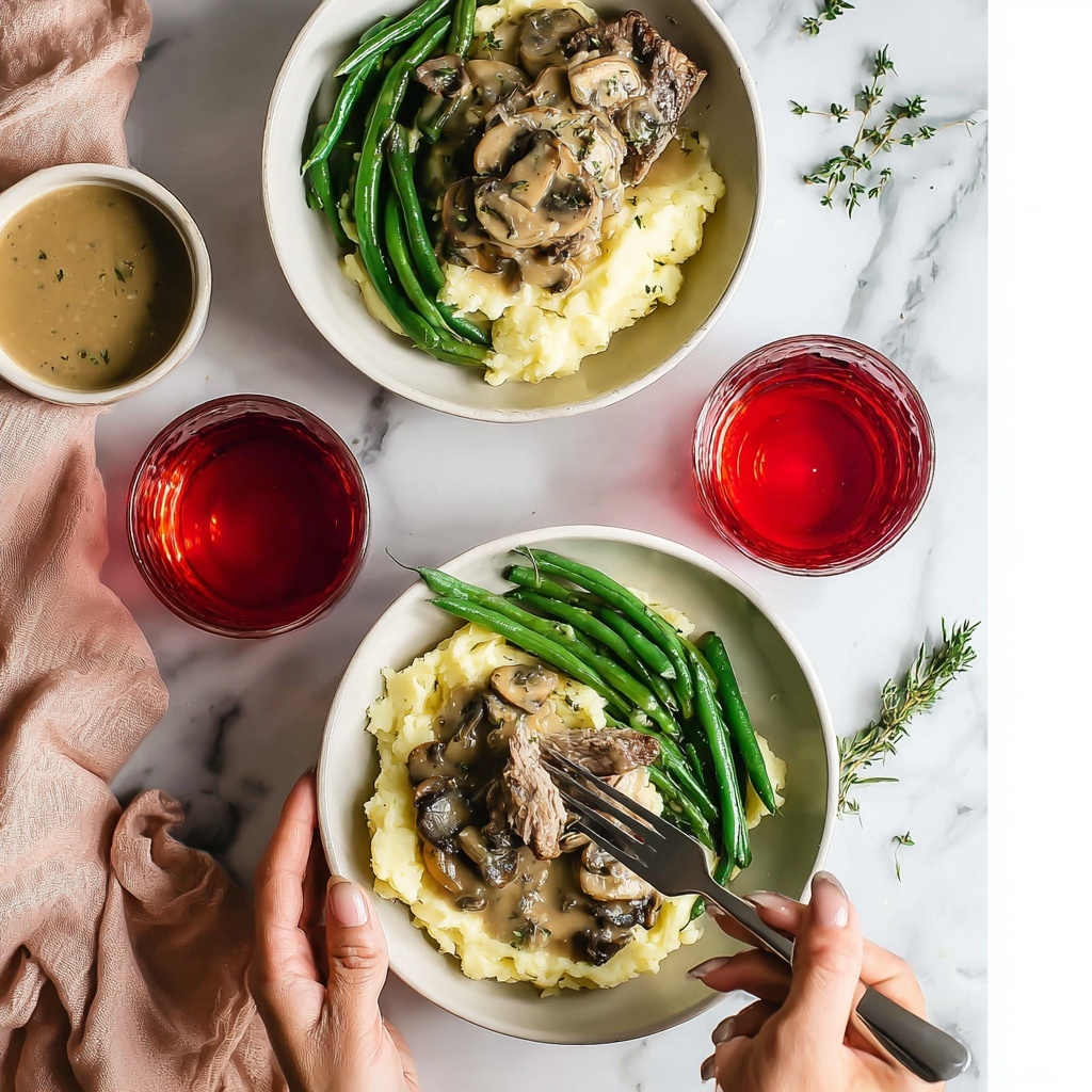 For classic pairings, think creamy mashed potatoes or buttery roasted vegetables like asparagus or Brussels sprouts. These sides soak up the mushroom sauce wonderfully and provide a comforting, balanced plate. If you want a lighter option, simple steamed green beans or a fresh mixed green salad work beautifully too.