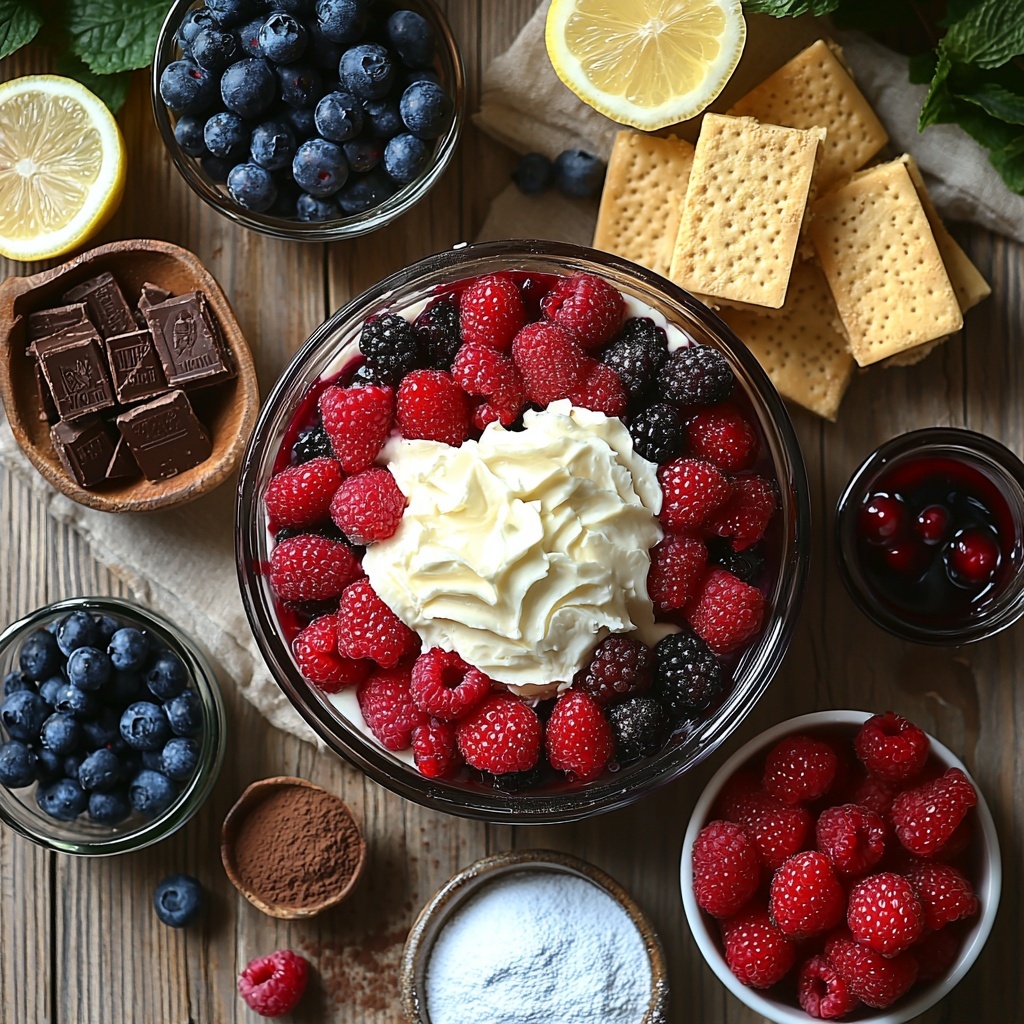 The magic of this Berry Tiramisu Trifle – Easy No-Bake Creamy Layered Dessert Recipe lies in its straightforward, quality ingredients that create contrasting textures and flavors. Each element plays a vital role—from the rich mascarpone giving smoothness to the tart berries adding vibrant pops of color and fresh zing.