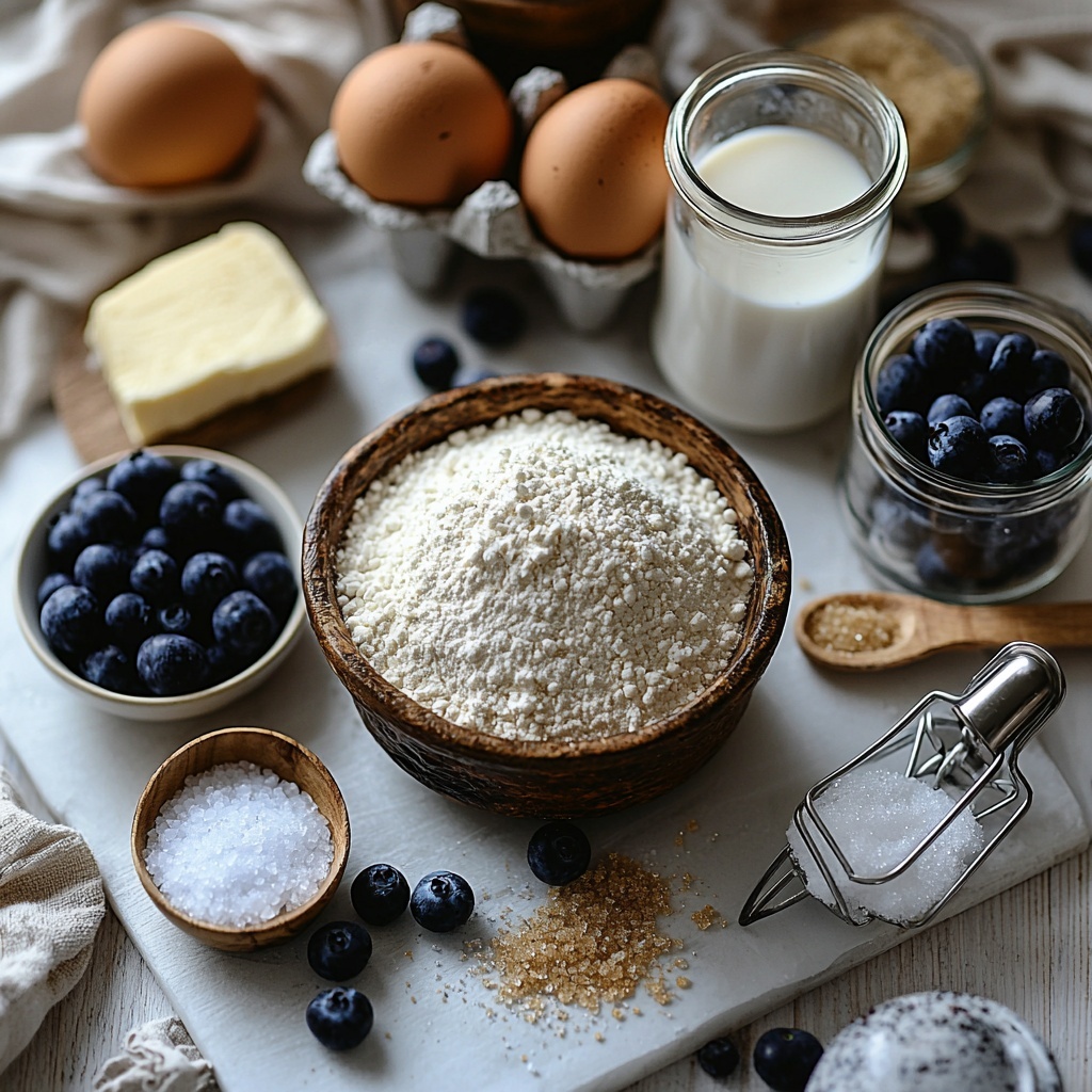 This recipe calls for straightforward ingredients that come together to create something truly special. Each element plays a key role, from the rich cream cheese adding a luscious texture to the gentle tartness and color of the blueberries, making this loaf both beautiful and delicious.