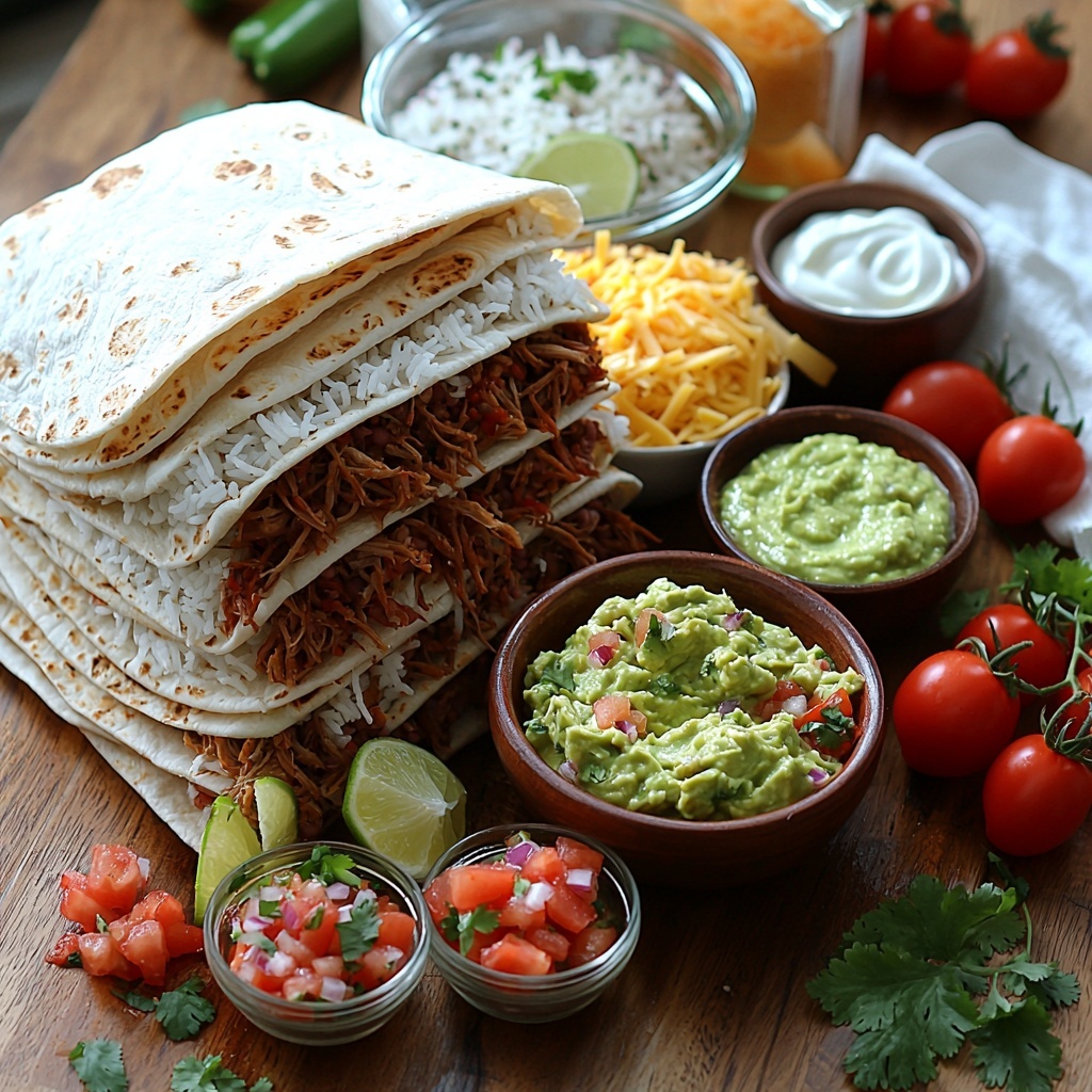 A deliciously hearty Carnitas Burrito recipe featuring warm flour tortillas filled with cilantro lime rice, pinto beans, tender carnitas, melted cheese, fresh tomato salsa, and creamy chipotle guacamole. Perfectly balanced with fresh sour cream and cilantro garnish, this burrito makes a satisfying meal ready in just 40 minutes.