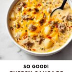 - Season and Serve: Taste the soup and season with salt and pepper as needed. Serve hot and enjoy your comforting cheesy sausage potato soup.
