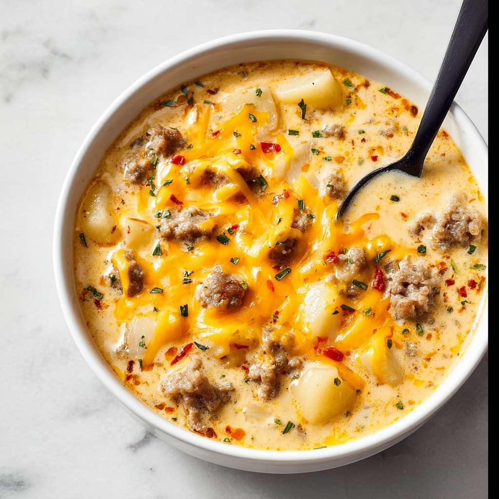 To elevate your Cheesy Sausage Potato Soup Recipe, top it with crispy bacon bits, a sprinkle of fresh chopped parsley, or even some green onions for a fresh bite. A dollop of sour cream or a handful of extra shredded cheddar also brings an indulgent finish. These garnishes add texture and vibrant color, making the soup even more inviting.