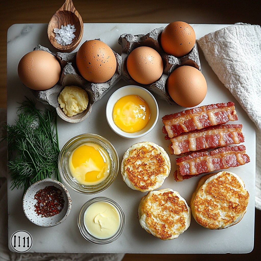With just a handful of simple yet indispensable ingredients, you can create this spectacular brunch staple. Each ingredient plays a vital role—whether it’s the fresh egg yolks that create the creamy hollandaise, the buttery toasted English muffins providing crunch, or the bright lemon juice that adds that necessary zing to the sauce.