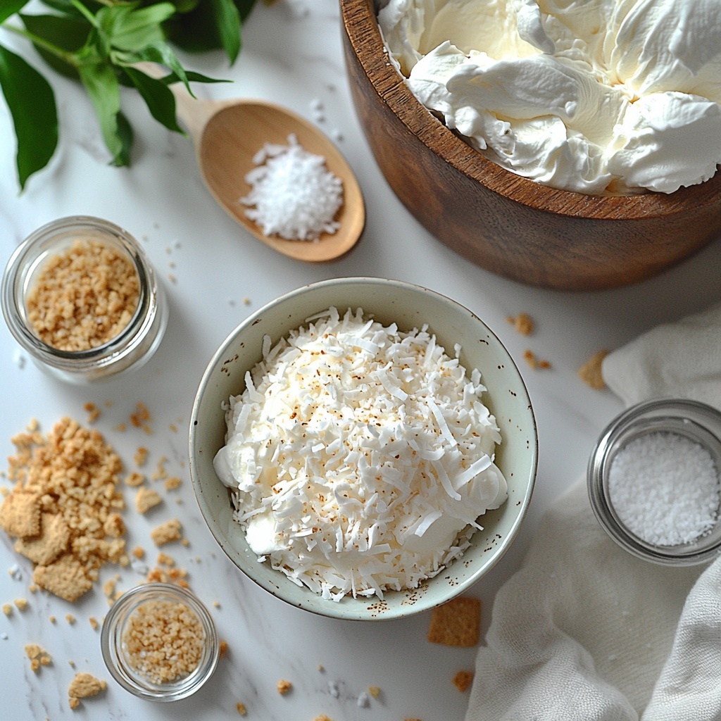 Gathering your ingredients is the first step to creating these delightful Coconut Snowball Cheesecake Bites Recipe. Each ingredient is simple yet plays an essential role in delivering the perfect balance of flavor, texture, and that snowy coconut appearance we all love.