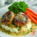 This Creamy Herb Chicken Thighs recipe features juicy, bone-in, skin-on chicken thighs cooked in a luscious garlic herb cream sauce, paired with perfectly roasted baby carrots and buttery mashed Yukon gold potatoes. The meal combines savory seared chicken with aromatic fresh herbs and a silky sauce, making it a comforting and elegant dinner option that’s easy to prepare.