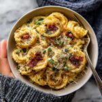 This creamy roasted garlic butternut squash pasta combines the natural sweetness of roasted butternut squash and garlic with savory herbs, melted cheeses, and crispy prosciutto for a comforting and flavorful dish. The squash and garlic are roasted to tender perfection, pureed into a smooth sauce enriched with ricotta, gouda, and parmesan, then tossed with perfectly cooked pasta and finished with buttery herb-infused notes and crispy prosciutto.