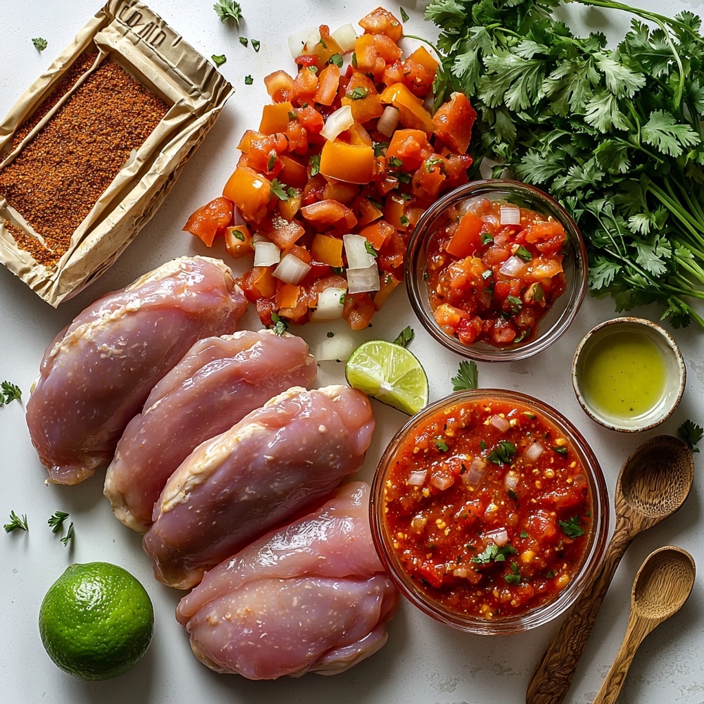 This easy Crockpot Salsa Chicken recipe features tender chicken breasts or tenders slow-cooked with zesty taco seasoning and salsa, resulting in a flavorful, juicy dish perfect for effortless weeknight dinners or meal prep. The chicken is cooked until shreddable, then finished with fresh lime juice for a bright, tangy finish.
