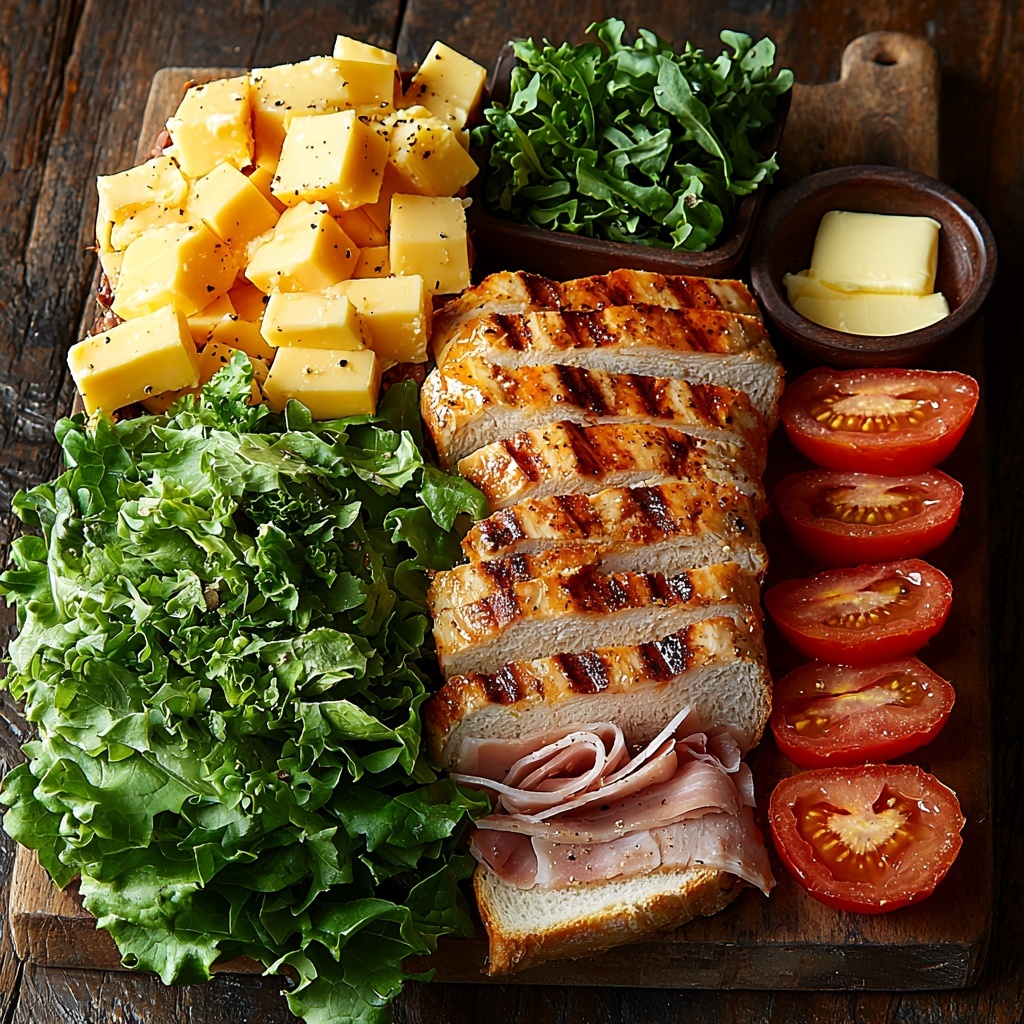 • Grilled chicken breast slices: The star protein of the sandwich, tender and flavorful from grilling.