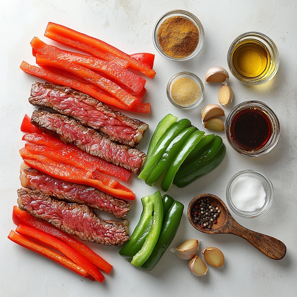 - Red bell pepper (1 medium, thinly sliced): Adds vivid color and a sweet crunch that balances the savory steak perfectly.