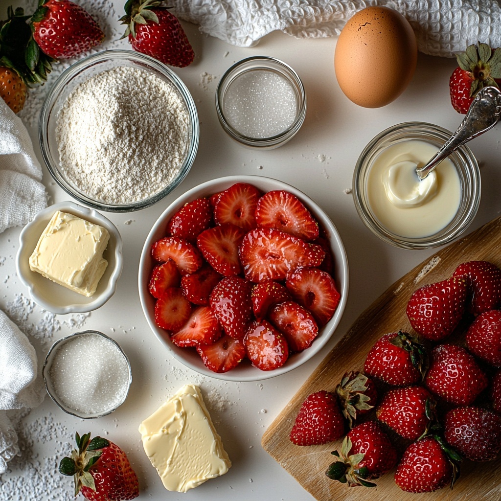 The magic of this Easy Strawberry Shortcake Delight Recipe lies in its straightforward yet thoughtfully chosen ingredients. Each component plays a crucial role — from the sweetness of fresh strawberries to the flakiness of buttery biscuits and the light creaminess of freshly whipped cream.