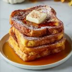 This delightful Fall Pumpkin French Toast Breakfast combines the warm, comforting flavors of pumpkin and autumn spices with caramelized apples for a cozy morning treat. Thick-cut bread slices are soaked in a spiced pumpkin-egg batter and cooked to golden perfection, then topped with sweet, cinnamon-scented sautéed apples, butter, and maple syrup for an irresistible seasonal twist on classic French toast.