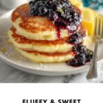Learn how to make fluffy, tender pancakes paired with a fresh homemade blueberry syrup infused with lemon zest and juice. These pancakes feature a light and airy texture thanks to whipped egg whites and buttermilk, perfect for a delightful breakfast or brunch.