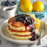 Learn how to make fluffy, tender pancakes paired with a fresh homemade blueberry syrup infused with lemon zest and juice. These pancakes feature a light and airy texture thanks to whipped egg whites and buttermilk, perfect for a delightful breakfast or brunch.