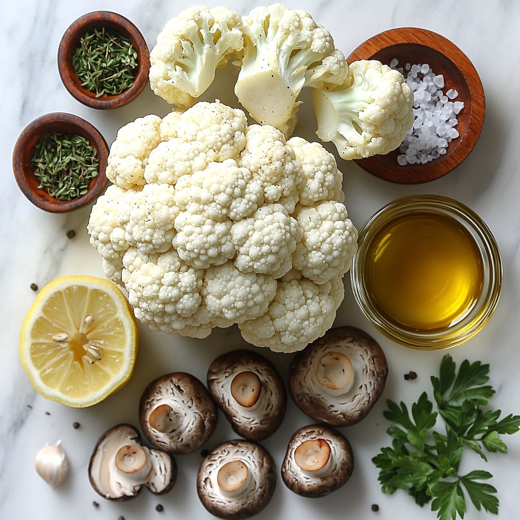 A savory and aromatic dish featuring roasted cauliflower and cremini mushrooms tossed with garlic, thyme, and rosemary, then finished with fresh parsley and a splash of lemon juice. Perfect as a flavorful side or a light vegetarian main.