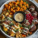 This Golden Roasted Vegetable & Chickpea Harmony Bowl combines nutrient-rich roasted cauliflower, sweet potatoes, carrots, and protein-packed chickpeas with a creamy, tangy tahini drizzle. Served atop a fluffy bed of quinoa, rice, or couscous, this wholesome bowl is perfect for a comforting and flavorful vegetarian meal that’s easy to prepare and packed with vibrant spices like smoked paprika, cumin, and turmeric.