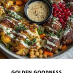 Serve this dish in vibrant bowls to showcase the golden colors and textures. Layer ingredients thoughtfully—grains on the bottom, veggies and chickpeas in the middle, topped with the tahini drizzle and garnishes. For entertaining, offer toppings and sauces on the side so everyone can customize their own bowl, making it interactive and fun.