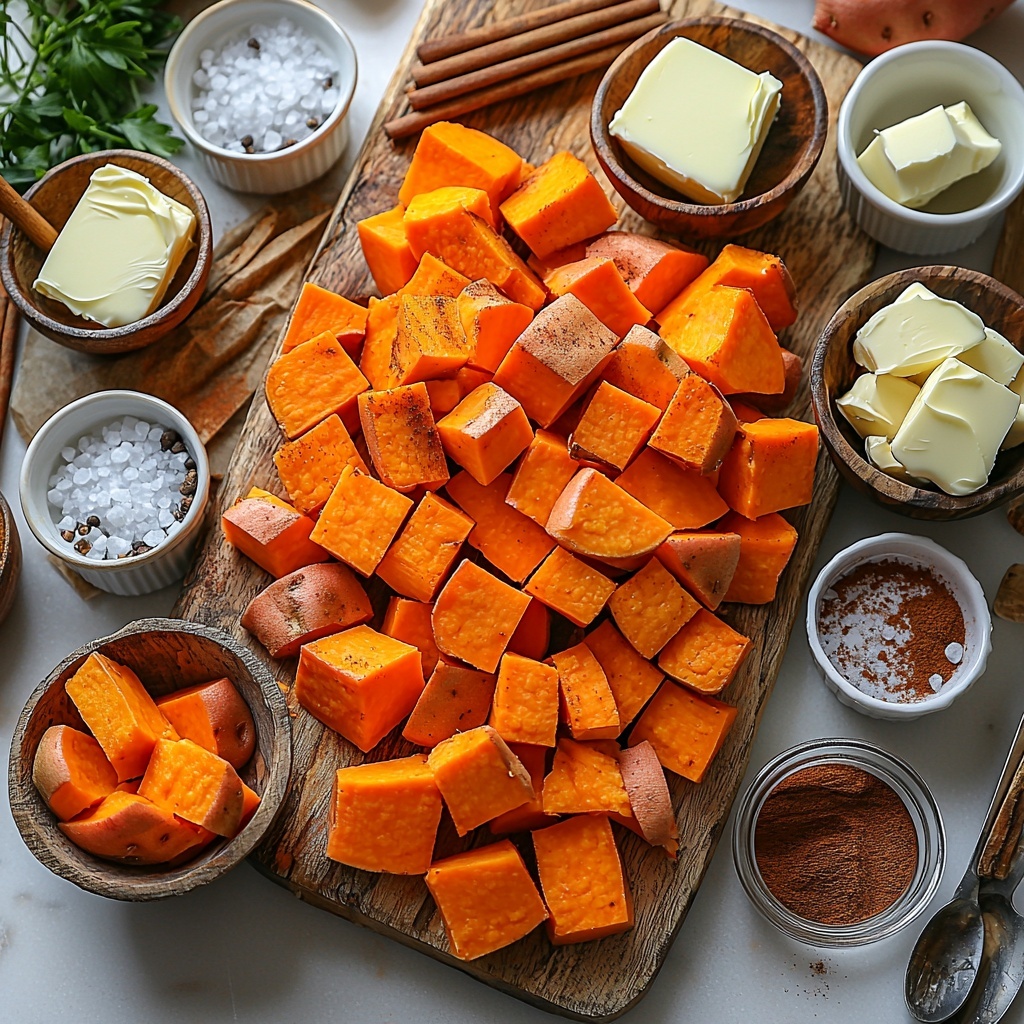 Start by peeling your sweet potatoes cleanly so no skins remain—this is key for that ultra-smooth texture you’re aiming for. Cut them into evenly sized chunks, about 1 to 2 inches, to ensure uniform cooking.