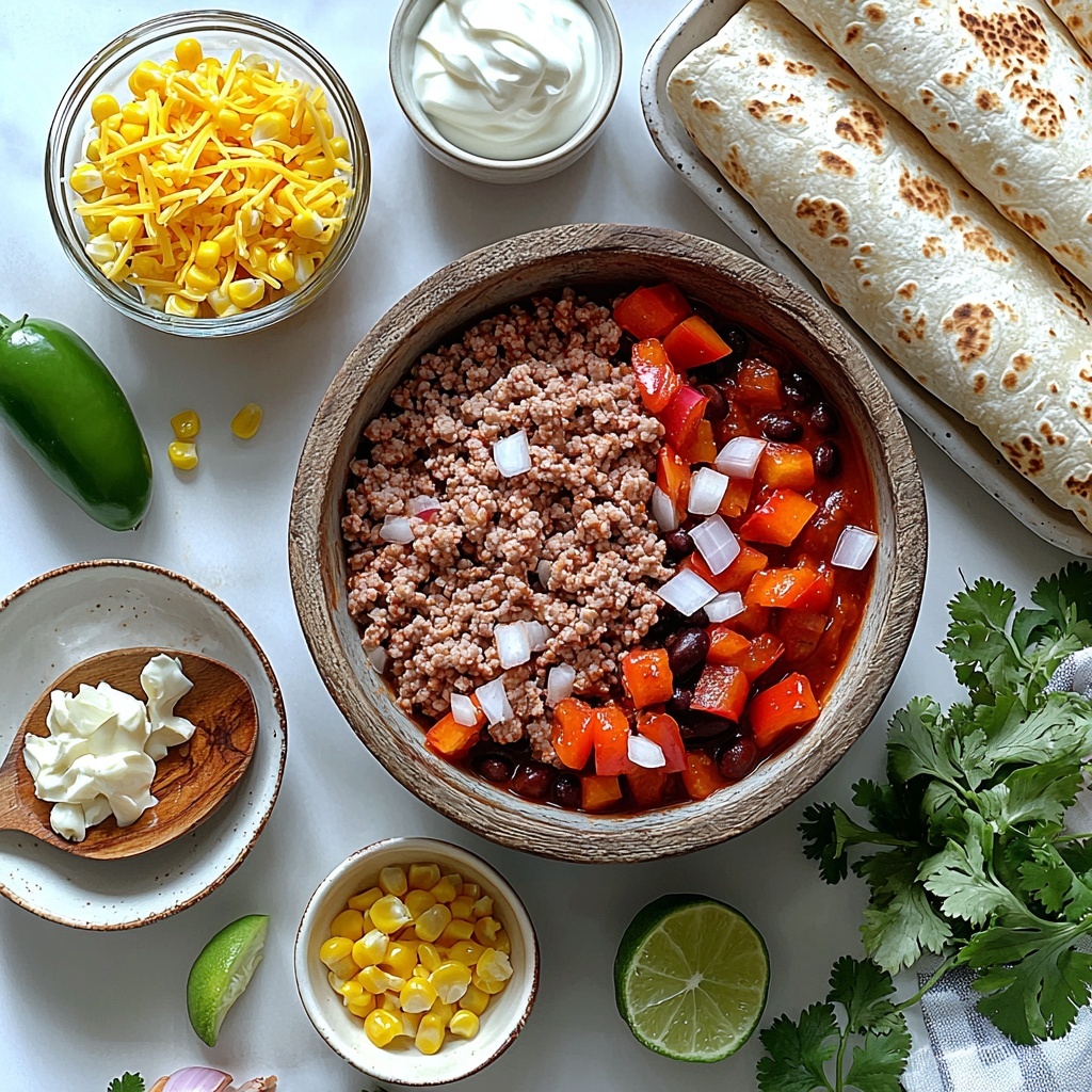 These Ground Turkey Black Bean Enchiladas are a flavorful and wholesome Mexican-inspired dish featuring tender ground turkey, black beans, and vegetables wrapped in flour tortillas, all smothered in rich enchilada sauce and melted Mexican blend cheese. Baked to perfection, this comforting meal is perfect for weeknight dinners and can be easily customized with toppings like jalapeños, sour cream, and fresh cilantro.