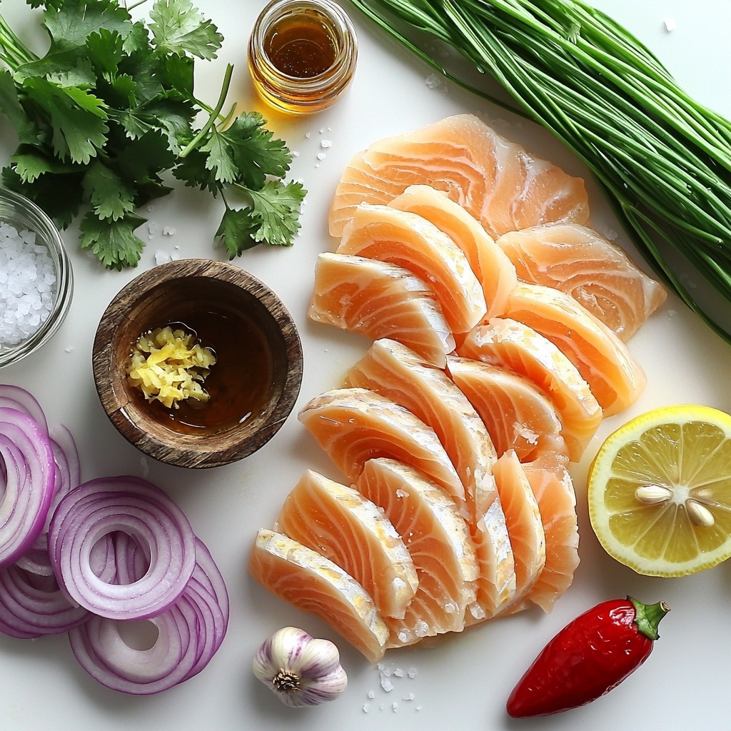 The beauty of the Hamachi Crudo with Yuzu Ponzu Sauce Recipe is how its straightforward ingredients come together to create a harmony of textures and flavors. Each component plays a vital role from the silky hamachi to the zingy citrus and the subtle hint of heat. Here’s what you’ll want to gather before you start: