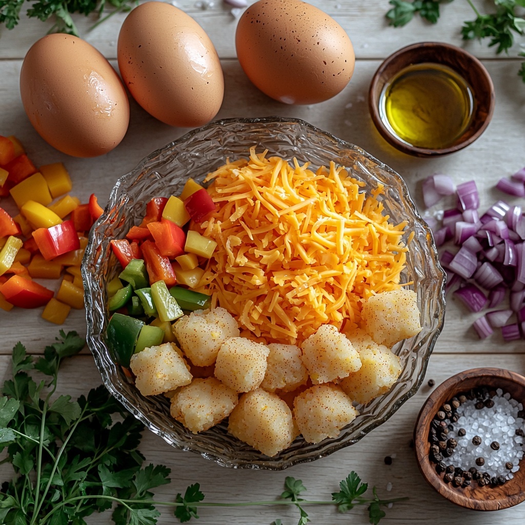 This recipe shines because it uses simple, staple ingredients that come together beautifully. Each element plays a vital role—hash browns for crunch, eggs for richness, veggies for freshness and color, and cheese for that irresistible gooey finish.