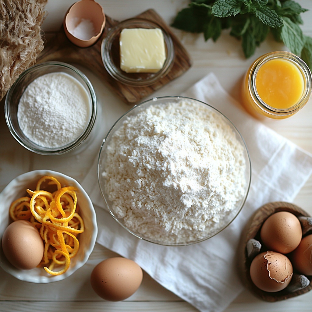 2. Prepare dough: In a large mixing bowl, combine the eggs, melted butter, sugar, salt, and orange zest. Gradually add the flour while mixing to form a soft dough.