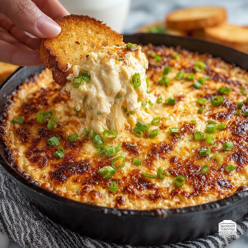 5. Cool and Serve: Let the dip cool for about 5 minutes before serving. Garnish with chopped green onions and serve warm with your favorite crackers, bread, or fresh vegetables for dipping.