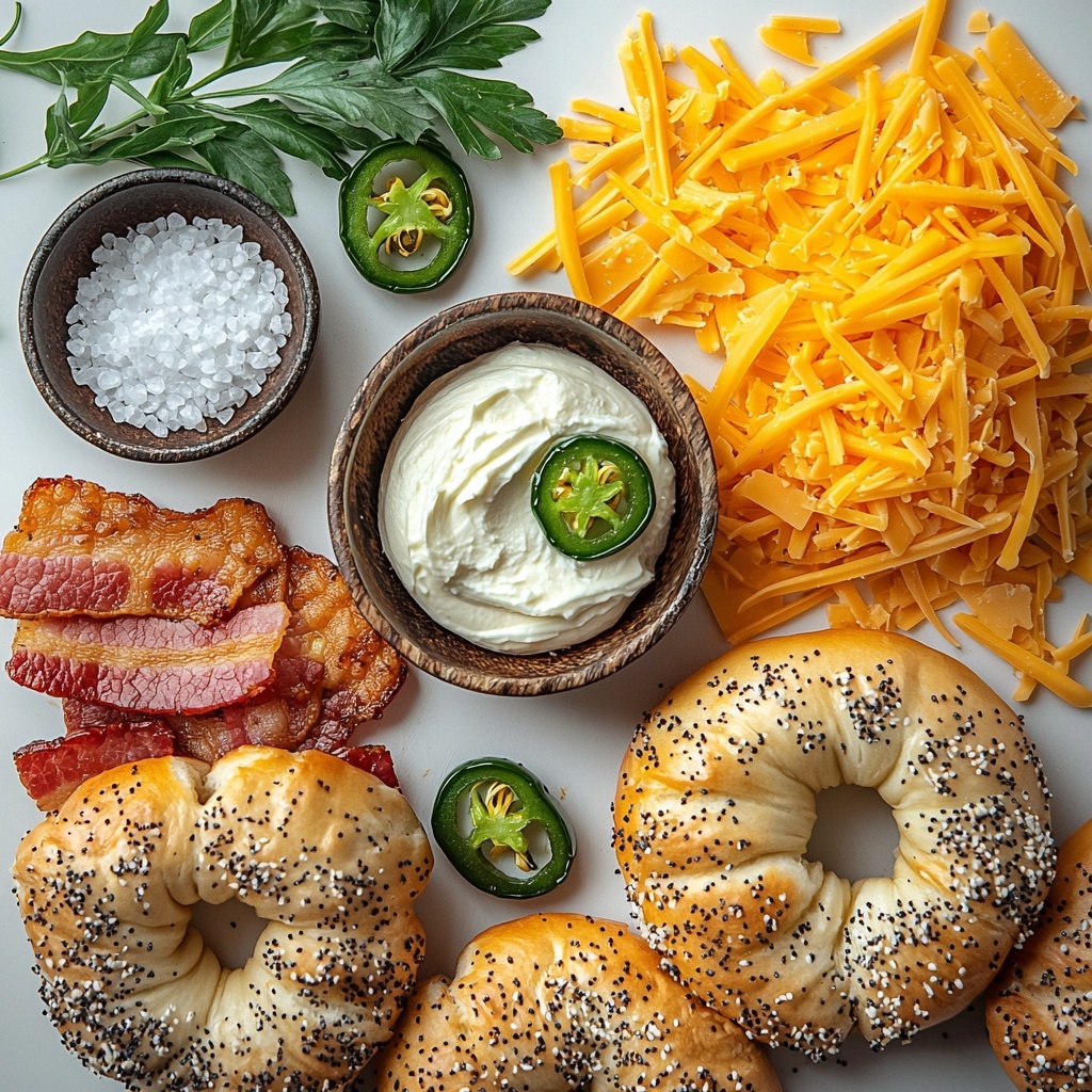 These ingredients might seem simple, but each one plays a crucial role in building the bold flavors and satisfying textures that make the Jalapeño Popper Bagels Recipe so special. From the crispiness of bacon to the creamy richness of cheeses and the fresh kick from jalapeños, every bite bursts with personality.