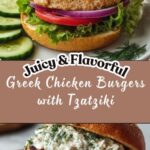 These Juicy Greek Chicken Burgers with Tzatziki Sauce combine tender ground chicken seasoned with traditional Mediterranean herbs and spices, grilled to perfection and served with a creamy, refreshing homemade tzatziki sauce. This recipe offers a flavorful and healthy twist on classic chicken burgers, perfect for a quick weeknight dinner or a casual gathering.