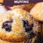7. Scoop Batter: Use a large ice cream scoop to fill each muffin liner about 3/4 full. Top each muffin with the remaining 1/4 cup of blueberries and sprinkle 3 teaspoons of white granulated sugar over the top for a sweet crunch.