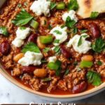- ¾ cup Crumbled Goat Cheese: Creamy and tangy, it melts slightly over the chili for richness; feta cheese works if preferred.