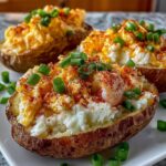 Loaded Cajun Seafood Stuffed Potatoes are a flavorful and hearty dish featuring baked russet potatoes filled with a creamy mixture of seasoned shrimp, crab meat, and melted cheddar cheese. Perfectly spiced with Cajun seasoning and garlic, these stuffed potatoes make for an impressive appetizer or satisfying main course.