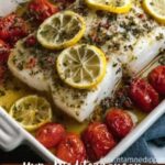 This Mediterranean Baked Fish Dinner Delight is a quick and flavorful meal featuring tender white fish fillets baked with cherry tomatoes, Kalamata olives, garlic, and aromatic herbs. With a perfect balance of zesty lemon and mild heat from red pepper flakes, this dish is both healthy and delicious, ideal for a weeknight dinner or a special occasion.