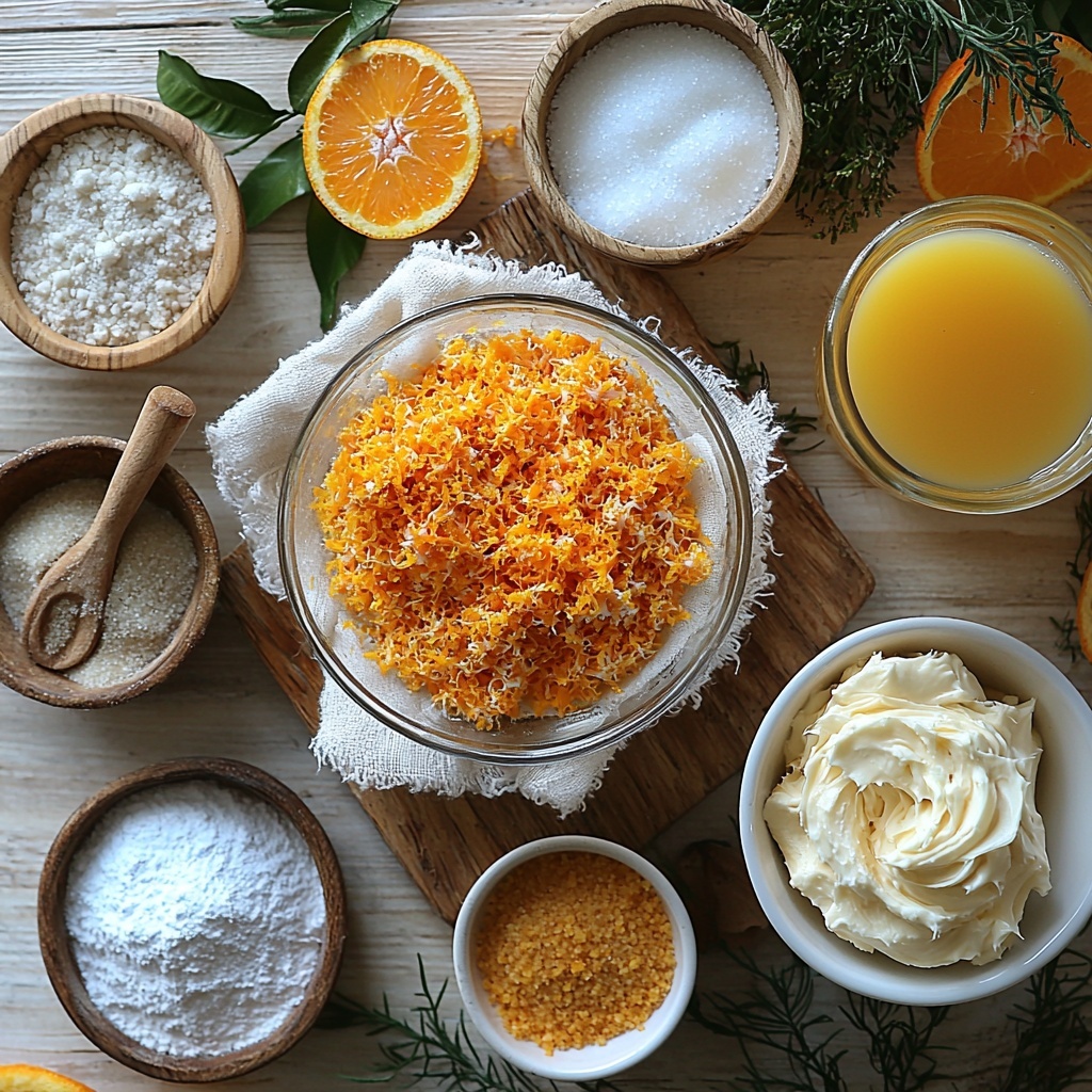 These ingredients may seem simple, but each one plays an essential role in creating the perfect texture, flavor balance, and delightful citrus aroma that make this recipe stand out. From the fresh orange zest to the creamy frosting components, everything comes together beautifully.