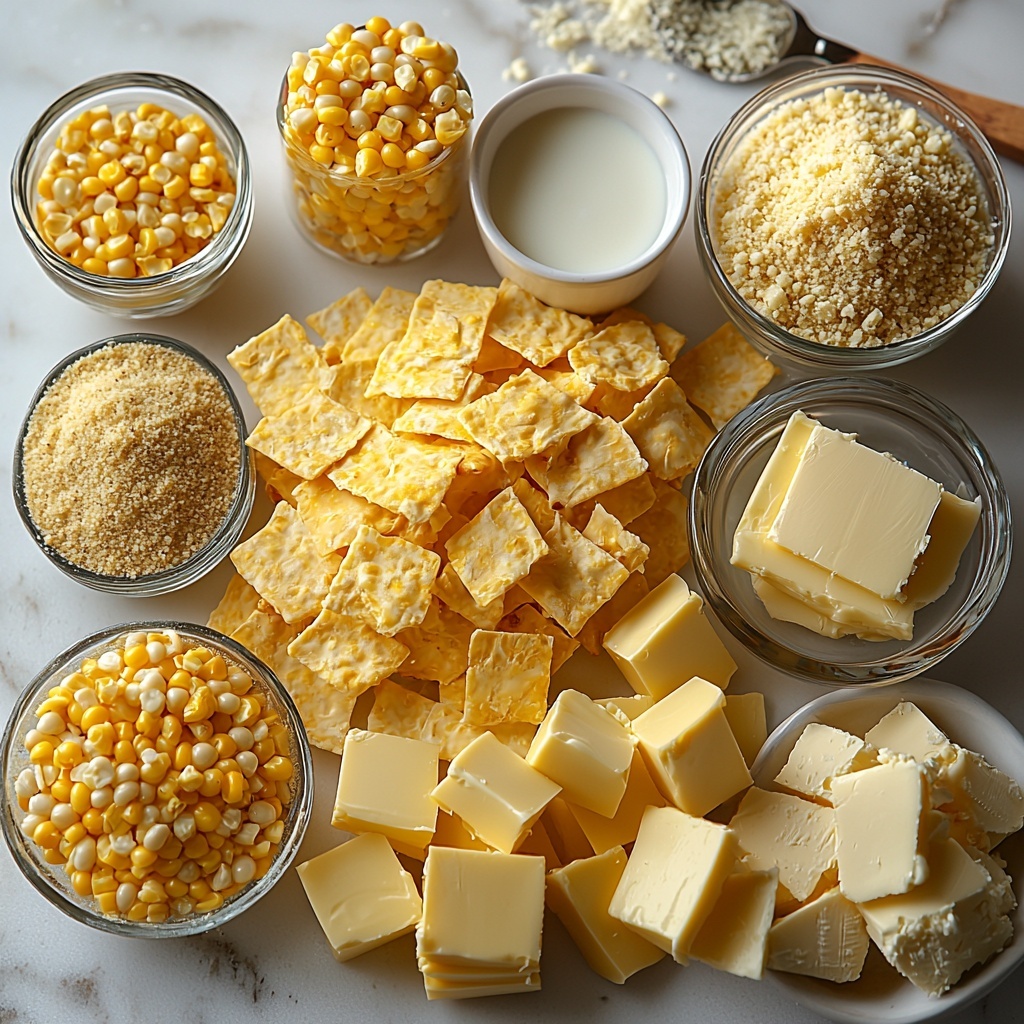 - Cream-style corn (14 ounces): Blends smoothly into the sauce, creating extra moisture and natural sweetness.