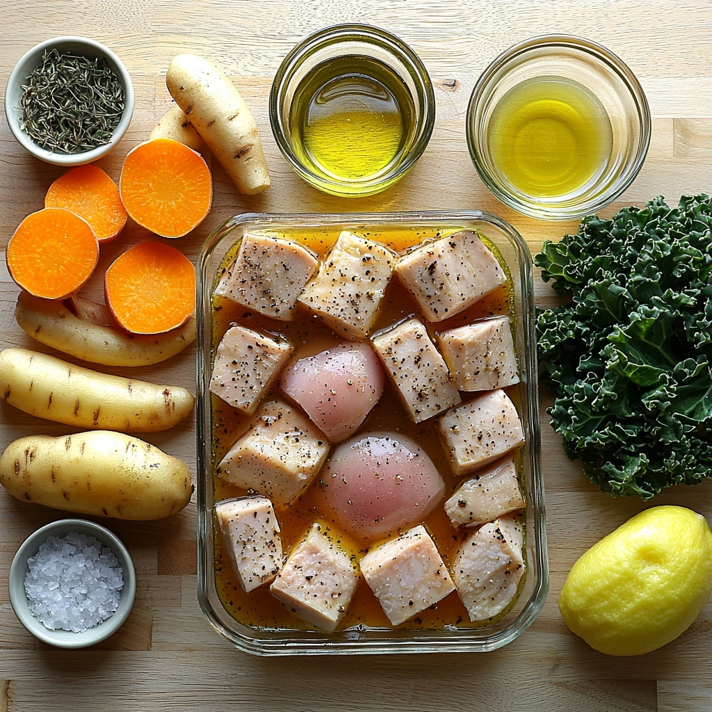 Simple ingredients, thoughtfully chosen, create the magic in this stew. Each one plays a crucial role, whether it’s the rich chicken thighs providing protein and flavor, the blend of root vegetables bringing sweetness and texture, or the kale adding a fresh, slightly bitter balance with a pop of green.