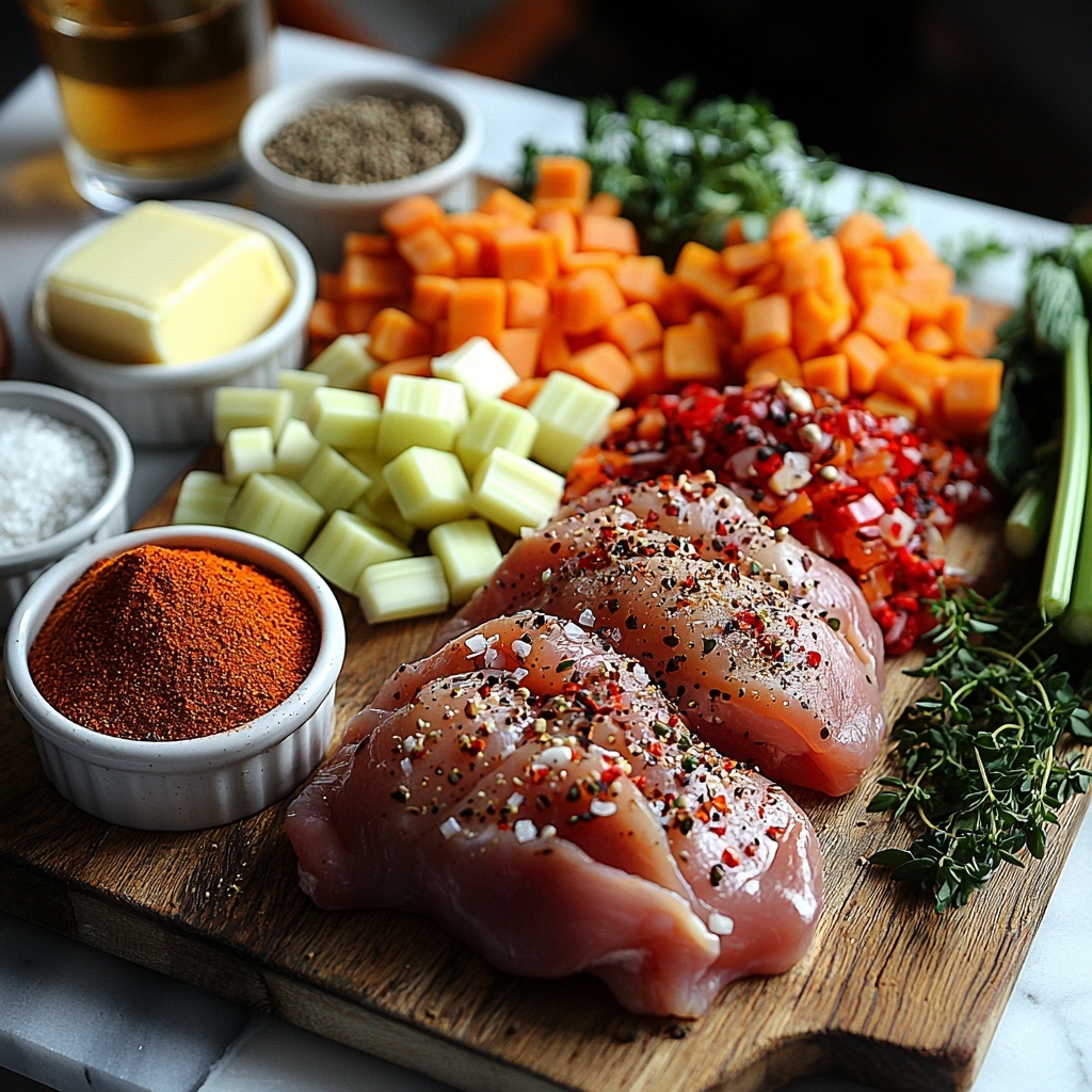 - Boneless chicken breasts or thighs: Tender and juicy protein choice; thighs add extra moisture.