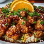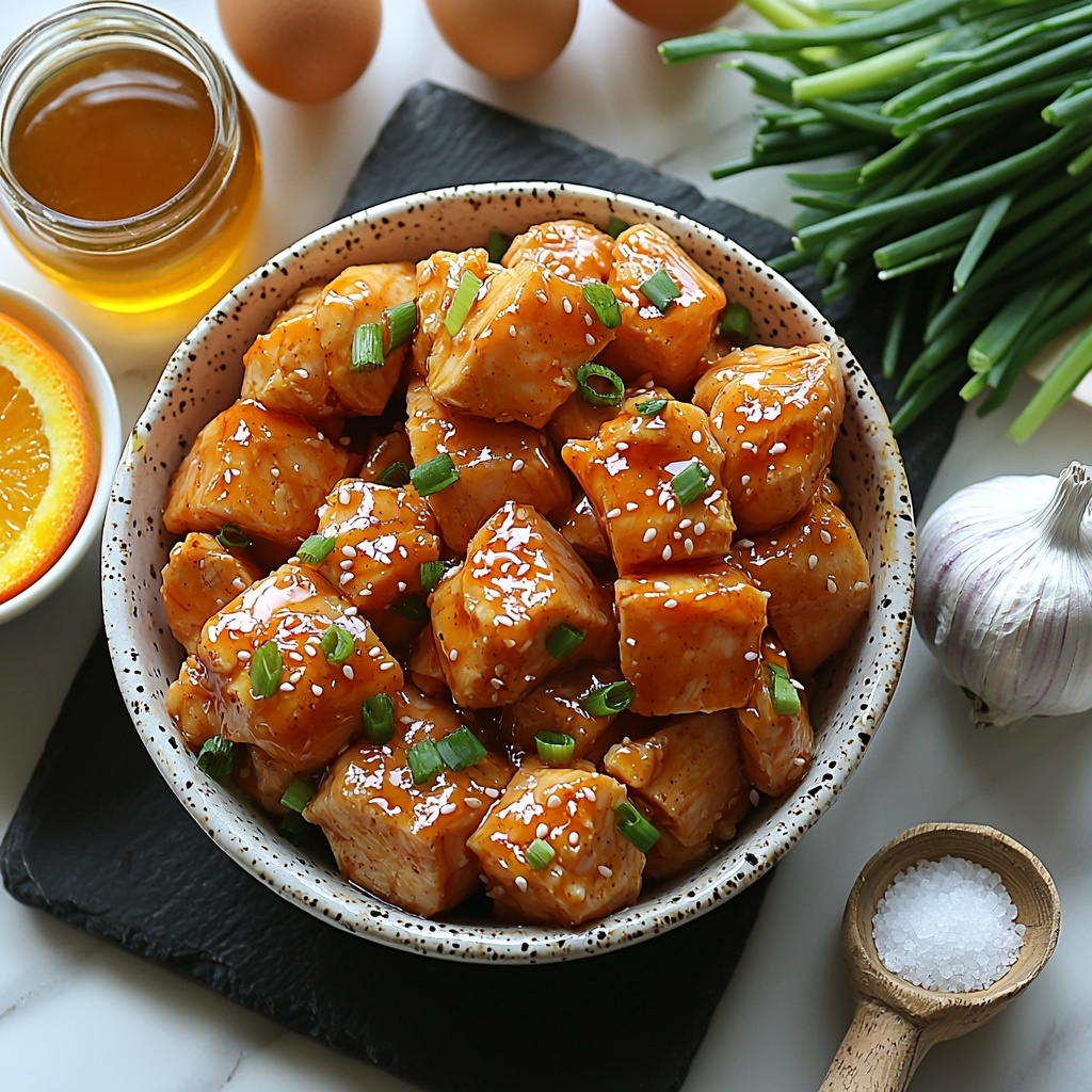 This classic Orange Chicken recipe features crispy fried chicken pieces coated in a tangy, sweet, and savory orange sauce. Perfectly balanced with fresh orange juice, ginger, garlic, and honey, this dish is a crowd-pleaser best served over steamed rice and garnished with sesame seeds and green onions for added flavor and texture.