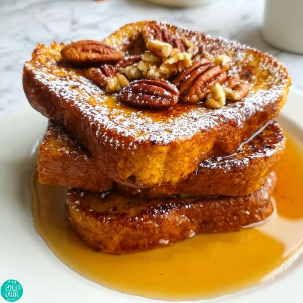 This Pumpkin French Toast recipe is a delightful fall-inspired breakfast that combines the warm flavors of pumpkin and spices with creamy custard-soaked bread. Perfect for cozy mornings, this dish features slices of thick brioche or challah bread dipped in a spiced pumpkin batter, cooked until golden brown, and served with maple syrup and optional nuts for a delicious start to your day.