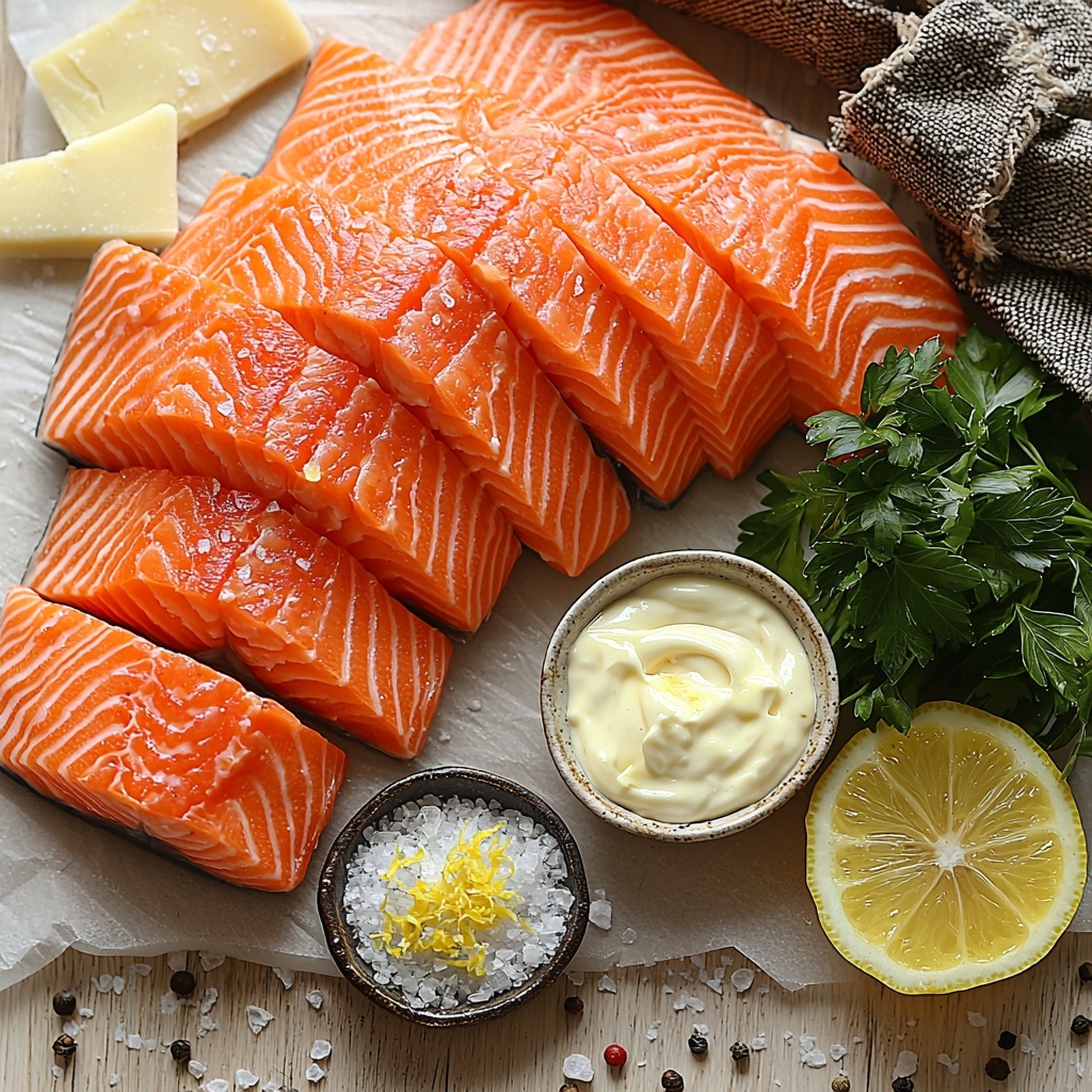 The beauty of this dish lies in its straightforward, high-quality ingredients, each carefully chosen to create a balance of moistness, tang, and a slightly crispy topping. Every component is essential to bring out the full savory charm of the salmon with a luscious cheese crust and bright notes.