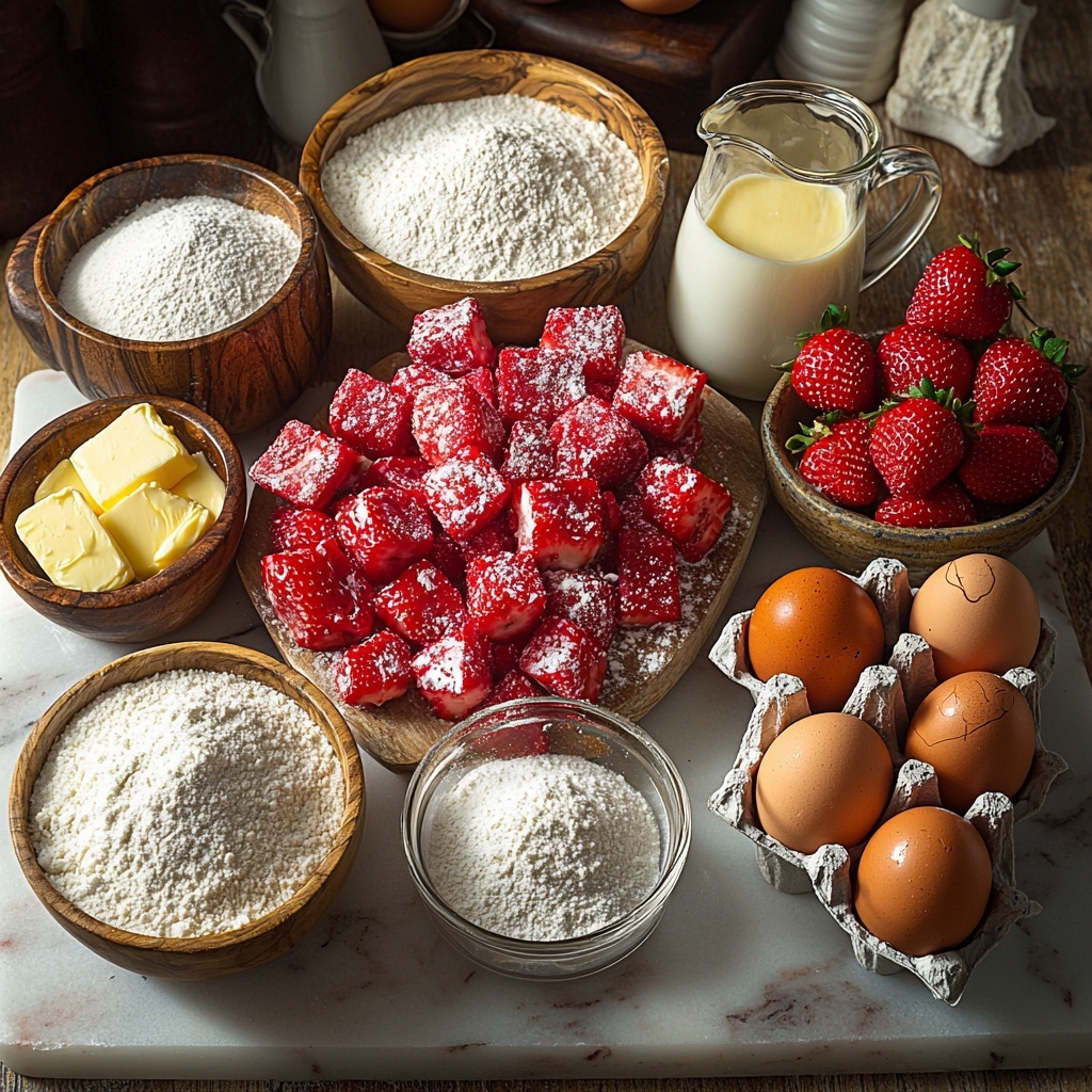 Gathering your ingredients for this Strawberry Buttermilk Pound Cake Recipe is delightfully simple. Each component plays a crucial role: from creating that tender crumb to accentuating the strawberry flavor and ensuring the perfect rise and texture.