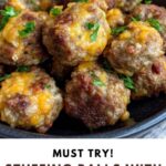Delicious and savory Stuffing Balls with Sausage, combining flavorful ground breakfast sausage, crispy bacon, cheesy cheddar, and hearty stuffing mix. Perfect as a party appetizer or savory snack, these bite-sized balls are baked to golden perfection, offering a perfect blend of crispy exterior and tender, flavorful interior.