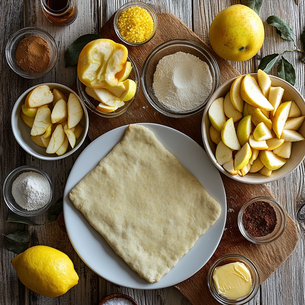Gathering these simple, pantry-friendly ingredients is the first step to creating a pie filled with amazing flavors and textures. Every component plays a crucial role, from the crisp apples providing natural sweetness to the cinnamon and nutmeg that build rich warmth, making your kitchen smell divine.