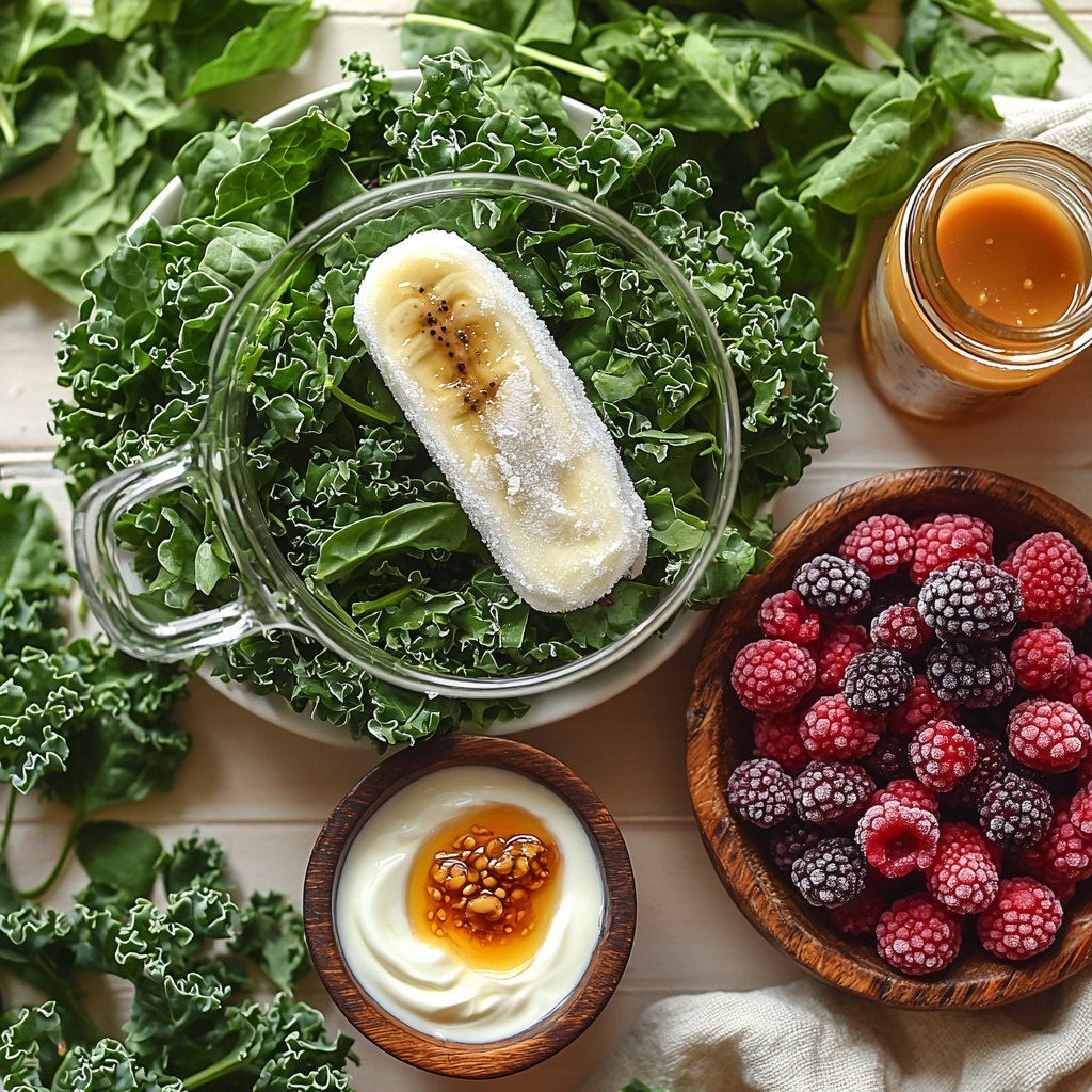- Add Ingredients to Blender: Place the milk first, followed by the baby greens, frozen banana, frozen fruit, Greek yogurt, nut butter or seeds, and sweetener into the blender in that exact order to ensure smooth blending.