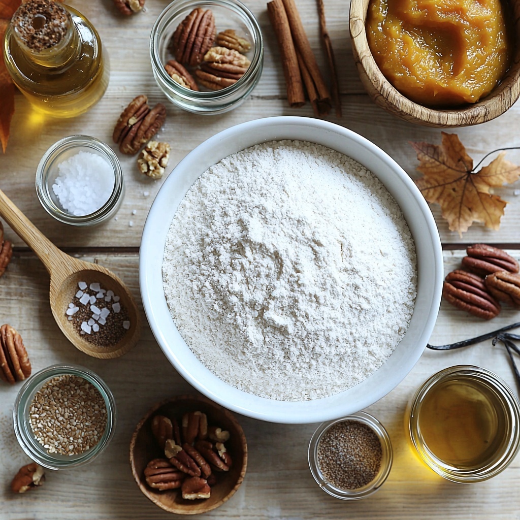 - Mix Dry Ingredients: Whisk together the plain flour, baking powder, coconut sugar, pumpkin spice mix, and sea salt in a separate bowl until evenly blended.